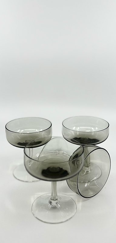 Klassisches Likörglas aus Rauchglas mit sechseckigem Stiel, tadelloser Zustand.